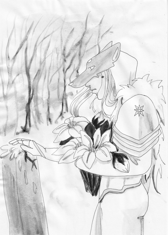 Рука в белой перчатке легонько смахнула снег с расколотого надгробного камня. Белые лилии коснулись бутонами его холодной поверхности. Забытое кладбище навещал только белый рыцарь. Доспех со вставками из розового золота, белый мех на правом плече, полностью прячущий правую руку. Белый капюшон, поверх которого бело-сиреневая маска волка. В тени маски его лицо не было видно, лишь белоснежные пряди волос выпадали из-под капюшона, поддаваясь лёгким порывам ветра. Раз за разом, приходя к могиле, он не говорил с покойными. Молча почитал память погибших, обречённый помнить всё, что случилось. Помнить ради того, чтобы подобное не повторилось.