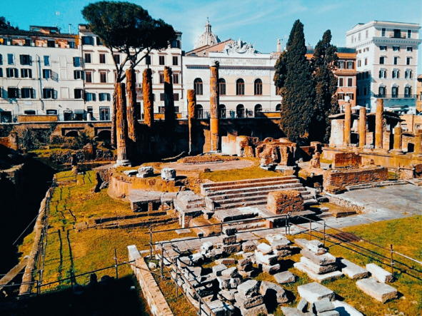 Площадь Торре Арджентина – часть древнего Марсова поля, предполагаемое место убийства Юлия Цезаря. Сейчас здесь археологическая зона, где были найдены четыре античных храма и театр, а также любимое место римских котиков