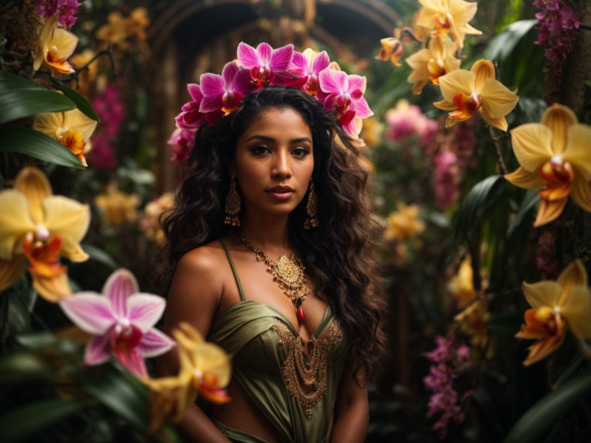 Today, in the magical depths of the Amazon rainforest, where life burgeons with remarkable diversity, the legend of the goddess and the young god lives on. Amidst the rich tapestry of flora and fauna, the enchanting orchid continues to bloom, a testament to the eternal bond between two souls and the everlasting beauty that can be found even in the darkest of times.
