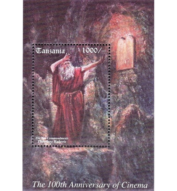У 1995 у рамках 100-годзьдзя кіно ў Танзаніі была апублікаваная сэрыя паштовых марак і блёк, які паказвае амэрыканскага акцёра Тэадора Робертса ў вобразе Майсея ў фільме «Дзесяць Запаведзяў», які дэманстраваўся ў 1923. Майсей назірае, як Бог піша Запаведзі на каменных плітах.