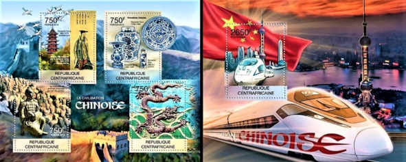 Кітайская цывілізацыя. Блёкі пошты Цэнтральна-Афрыканскай Рэспублікі, выдадзеныя ў 2012