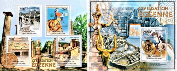 Эгейская цывілізацыя. Блёкі пошты Цэнтральна-Афрыканскай Рэспублікі, выдадзеныя ў 2012