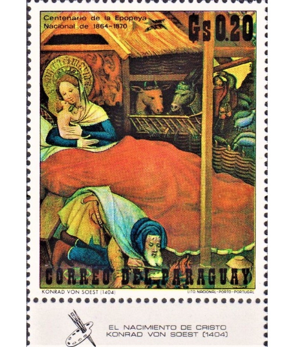 Божае Нараджэньне з алтара Бад-Вільдунгена. Конрад фон Зост (1370 – 1422). Марка пошты Парагваю, выдадзеная ў 1971