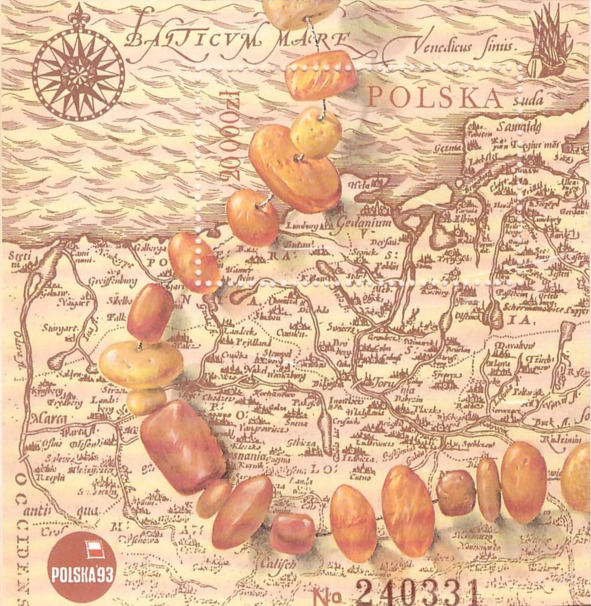 Бурштынавы шлях паводле Абрагама Артэліуcа з XVI стагодзьдзя. Блёк пошты Польшчы, выдадзены ў 1993