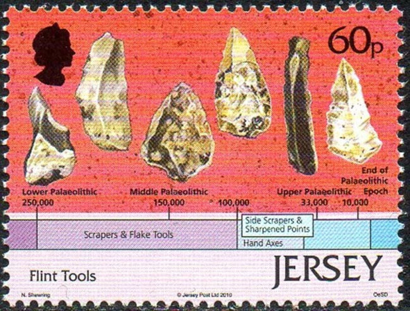 Першыя крэмневыя прылады працы. Марка пошты Джэрсі, выдадзеная ў 2010