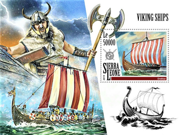 Драккар вікінгаў. Марка пошты Сьера Леонэ, выдадзеная ў 2019