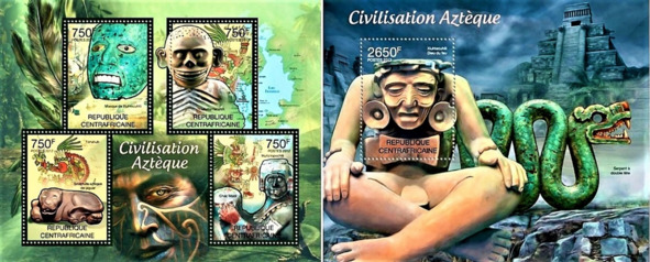 Цывілізацыя Ацтэкаў. Блёкі пошты Цэнтральна-Афрыканскай Рэспублікі, выдадзеныя ў 2012
