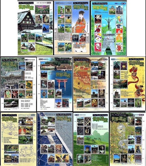 У сьпісе аб'ектаў Сьветавой спадчыны ЮНЕСКА ў Японіі значыцца 25 найменьняў, што складае 1,8% ад агульнай колькасьці. Уся інфармацыя па гэтых выданьнях ёсьць на сайце японскай пошты.
