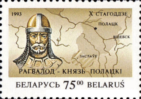 Рагвалод – князь Полацкі. Марка пошты Беларусі, выдадзеная ў 1993