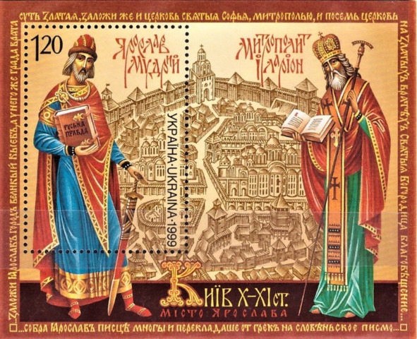 Яраслаў Мудры на блёку, выдадзеным поштай Украіны ў 1999