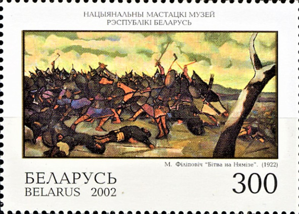 Бітва на Нямізе (1922). Міхась Філіповіч (1920—29). Нацыянальны мастацкі музэй Рэспублікі Беларусь. Марка пошты Беларусі, выдадзеная ў 2002