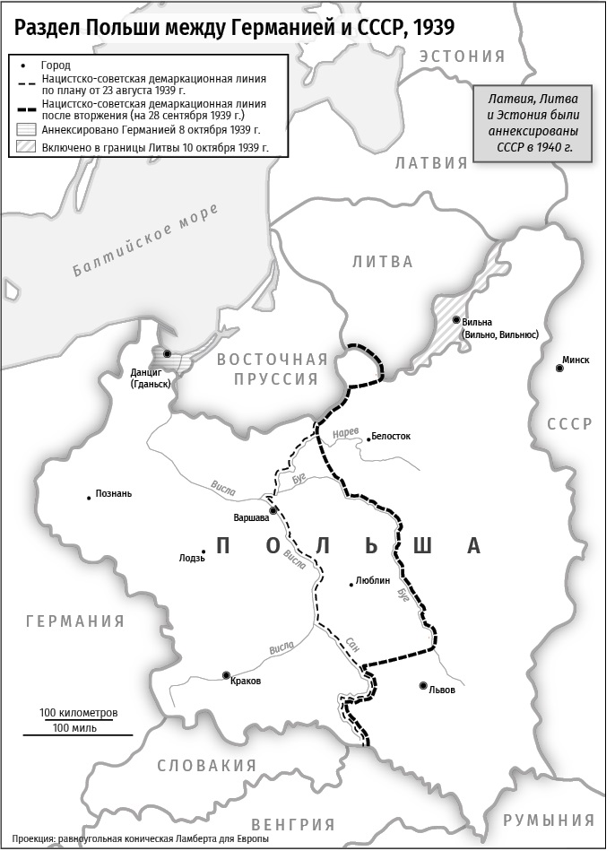 Карта 3. Раздел Польши между Германией и СССР. Август – сентябрь 1939 года