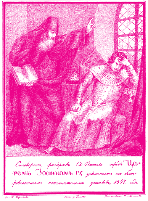 В молодости, начав править государством, царь с избранными своими советниками повел смелую внешнюю и внутреннюю политику. Целью ее было, с одной стороны, добиться берега Балтийского моря и войти в непосредственные торговые и культурные сношения с Западной Европой, а с другой – привести в порядок законодательство и устроить областное управление, создать местные земские миры, призвать их к участию не только в местных судебно-административных делах, но и в деятельности центральной власти. Земский собор, впервые созванный в 1550 г., развиваясь и входя обычным органом в состав управления, должен был укрепить в умах идею земского царя взамен удельного вотчинника. Но царь не ужился со своими советниками. При подозрительном и болезненно-возбужденном чувстве власти, он считал добрый прямой совет посягательством на свои верховные права, несогласие со своими планами – знаком крамолы, заговора и измены. Удалив от себя добрых советников, он отдался одностороннему направлению своей мнительной политической мысли, везде подозревавшей козни и крамолы, и неосторожно возбудил старый вопрос об отношении государя к боярству – вопрос, которого он не в состоянии был разрешить, и которого потому не следовало возбуждать.