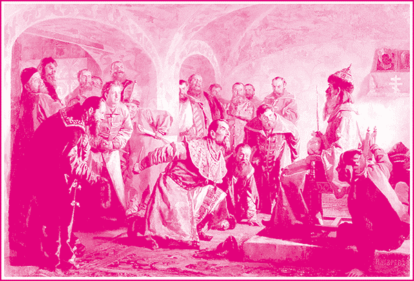 Позднее, в 1574 г., царь Иван венчал на царство другого татарина, касимовского хана Санн-Булата, в крещении Симеона Бекбулатовича, дав ему титул государя великого князя всея Руси. Переводя этот титул на наш язык, можно сказать, что Иван назначал того и другого Симеона председателями думы земских бояр. Симеон Бекбулатович правил царством два года, потом его сослали в Тверь. Все правительственные указы писались от имени этого Симеона как настоящего всероссийского царя, а сам Иван довольствовался скромным титулом государя князя, даже не великого, а просто князя Московского, не всея Руси. Он ездил к Симеону на поклон, как простой боярин и в челобитных своих к Симеону величал себя князем Московским Иванцом Васильевым, который бьет челом «со своими детишками», с царевичами. Можно думать, что здесь не все – политический маскарад. Царь Иван противопоставлял себя как князя Московского удельного государю всея Руси, стоявшему во главе земщины.