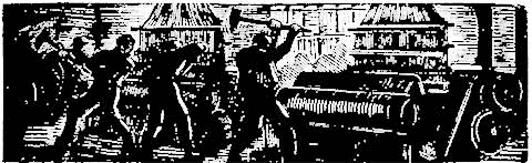Тут неподалеку огромный Шервудский лес. Молва рассказывает о том, что там когда-то жил Робин Гуд – стрелок, защитник бедняков. Первые рабочие объединения связаны были с этой легендой. Из Шервуде кого леса ждали появления грозного и сильного мстителя за страдания рабочего люда. Называли его имя. Это был некий Нэд Лудд. Его помощники, его вестники, «луддиты», ходили по селам и городам Часто слышали в лесах и оврагах, на глухих дорогах и по берегам Трента ночную стрельбу, голоса и таинственную маршировку неведомого войска. В Манчестере неизвестные люди врывались на фабрику и тяжелым енохом, как называли кузнечный молот, разбивали станки, трубопроводы паровых машин и даже головы хозяев. Такие же таинственные люди четыре раза проникали в дома Ноттингема, требовали прекращения работы и распространяли таинственные письма из «Конторы Нэда Лудда в Шервудском лесу» в министерство внутренних дед. В местечке Арнольд разбиты енохом шестьдесят вязальных станков, принадлежавших одному из самых ненавистных предпринимателей. 4 ноября был такой случай: вязальщики собрались около Ноттингема, потом, надев маски, вошли с разных концов в город, ворвались в дома предпринимателей и потребовали восстановления в правах всех уволенных рабочих. Мало того, они указывали от имени того же Неда Лудда из Шервудского леса, что если установка новых «широких» станков будет сопровождаться увольнением рабочих, то пострадают не только станки, но и хозяева станков. Эти люди проходили по Ноттингему с песнями такого содержания: «Пусть пугаются виновники человеческих страданий, но честному труженику нечего бояться ни за жизнь, ни за имущество. Мы ненавидим только широкий станок, на котором хозяева выткали нам узкую плату. Смерть машинам, убирающим людей, и наш Лудд, ломая все преграды, исполнит приговор рабочей семьи».