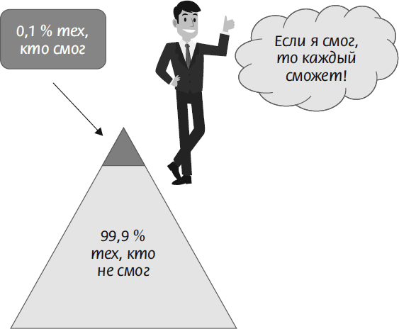 Типичная модель обучения продавцов в софтверных компаниях – попытка подражать лучшим в стиле «Смог я – сможешь и ты! Делай как я» (рис. 1). Это типичная ошибка выжившего, которую с удовольствием описывают в многочисленных автобиографиях чемпионы, герои и баловни судьбы.