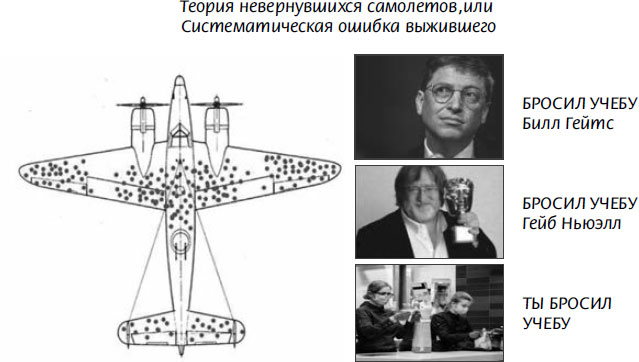 Ошибка выжившего – распространенное когнитивное искажение, в основе которого лежит непонимание причины и следствия. Человек находит закономерность в наборе данных, но не учитывает вероятность простого совпадения. Например, то, что некоторые основатели известных компаний бросили учебу в университете и стали успешными, является совпадением, поскольку не обязательно этот факт привел их к такому результату (рис. 2).