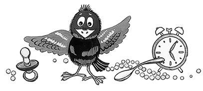 Дядя Фёдор его накормил и на шкаф посадил. И назвали галчонка Хватайкой: он что ни увидит, всё на шкаф тащит. Увидит спички – на шкаф. Увидит ложку – на шкаф. Даже будильник на шкаф перетащил. А взять у него ничего нельзя. Сразу Хватайка крылья в стороны, шипит и клюётся. У него на шкафу целый склад получился. Потом он немного подрос, поправился и стал в окно вылетать. Но к вечеру обязательно возвращался. И не с пустыми руками. То ключ от шкафа утащит, то зажигалку, то детскую формочку. Однажды даже соску принёс. Наверное, какой-нибудь малыш спал в коляске на улице, а Хватайка подлетел и соску вытащил.