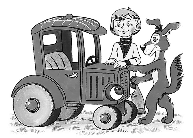 Он ушёл. А мальчик с Шариком стали тр-тр заводить. Стали в трактор суп заливать и котлеты запихивать. Прямо в бак. Трактор как затарахтит!