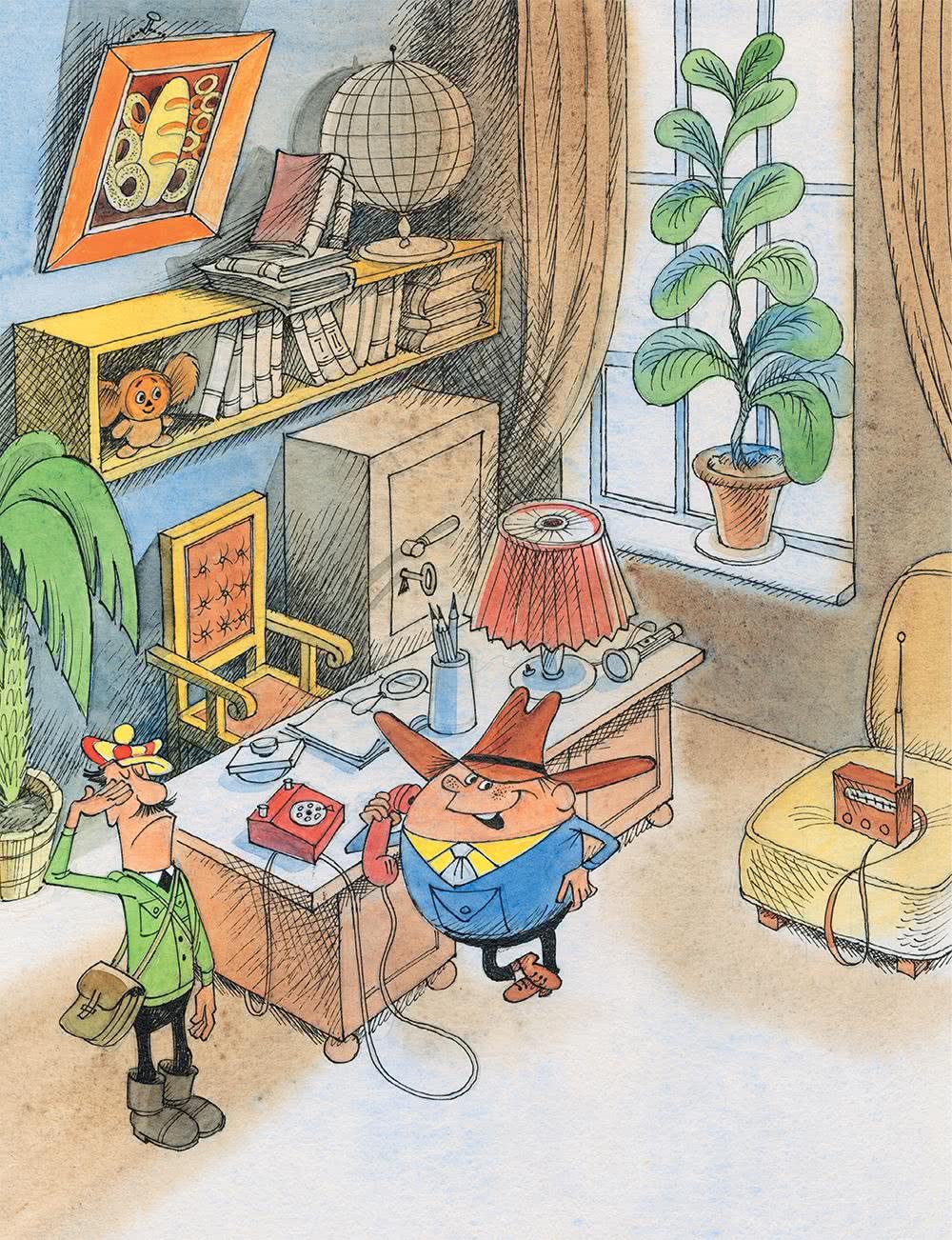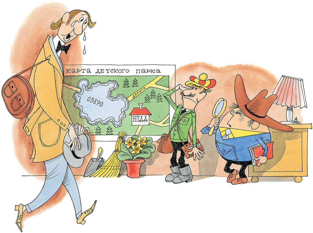 – Минуточку! – сказал Колобок. Он сел за стол, взял в руки огромное увеличительное стекло и внимательно стал рассматривать какой-то окурок. – Войдите.
