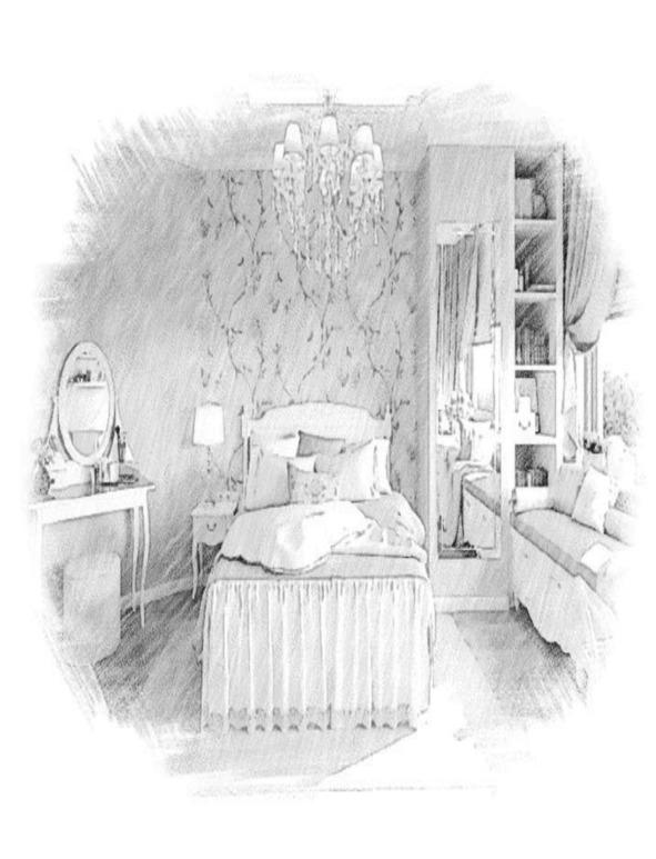 The forked staircase ended at the second floor. A barrier of carved railings wrapped around the column like a thin bracelet. Mellie could see the first floor hall into the open space between this barrier and the glass. She and Mona climbed the stairs to the left, and after walking only a few steps down the left corridor, they found themselves at the door to the guest room – it was Mellie’s bedroom. Mona’s bedroom was a little closer to the stairs and almost opposite. Two more bedrooms were located further down the corridor, but they were empty. On the right side of the second floor the owner’s apartments were: his bedroom, the second mini-cabinet, a bathroom and a dressing room.