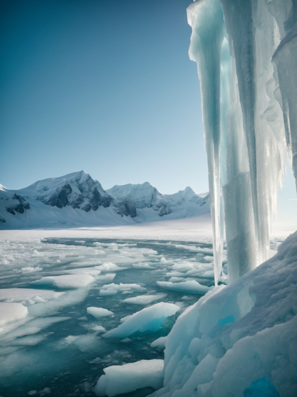 As I explore further, I stumble upon a series of strangely shaped formations jutting out from the ground. These icy pillars tower several meters high, their surfaces sparkling like diamonds in the weak sunlight. The beauty and fragility of these structures remind me of a surreal art installation crafted by nature itself.