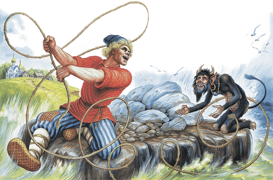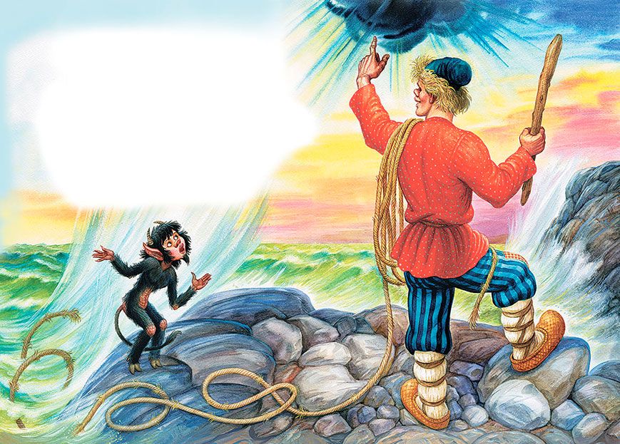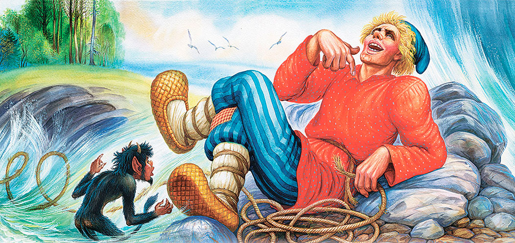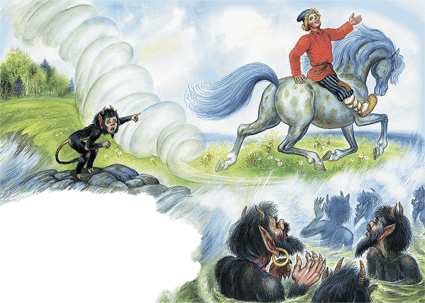 Не послушался петушок сестры; покатился по льду, лёд проломился, и петушок – бултых в воду! Только петушка и видели.