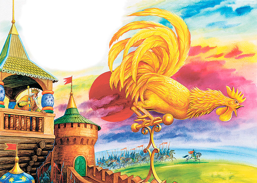 – Вот петух так петух! Такой птицы я никогда не видывала: и пёрышки-то какие красивые, и гребень-то какой красный, и голос-то какой звонкий! Слети ко мне, красавчик.
