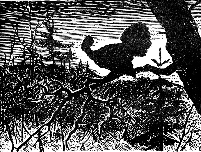 Всего затруднительнее в этой весенней охоте подход или, вернее, подскакивание, особенно когда место слишком открыто и негде спрятаться. Лучше выбирать самый длинный путь, если он представляет большие удобства, то есть имеет деревья, которые бы заслоняли охотника от глухаря, и лишен больших сугробов, ям и груд валежника. Как только глухарь участит свое тэканье и начнет настоящее щелканье, надо быть готовым к прыжку: при первом скирканье охотник стремглав бросается вперед, делает два-три огромных прыжка и останавливается как вкопанный, по возможности раньше, чем птица кончит щелканье, так как иногда эхо последних шагов может потревожить ее. Тут уже нечего разбирать, провалились вы в воду или снег, а необходимо стоять неподвижно до следующего боя, стараясь вперед заранее определить направление и самое место будущих прыжков, чтобы снова не попасть в еще более неловкое положение. При последнем прыжке необходимо продавливать под ногами лед, некрепкий наст или скрытый под снегом валежник. В остзейских губерниях иногда подпрыгивают к глухарю при помощи длинной палки, но навряд ли это удобно. Гораздо благонадежнее способ, употребляемый в Австро-Венгрии, где очень многие охотники подходят к токующему глухарю, держа перед собою густую сосенку до сажени вышиною или, что еще лучше, передвигая особо устроенную ширму под цвет почвы и окружающей местности, то есть ранней весной белую, позднее же серую или желтовато-зеленую.