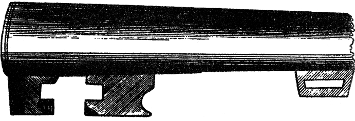 Так как двойное скрепление при усиленной стрельбе, в особенности на садках, оказалось недостаточно прочным и стволы расшатывались, то лет десять назад начало входить в употребление третье, верхнее скрепление, так н. тройной затвор. Простейшее третье скрепление заключается в том, что планка стволов удлинялась, на продолжении этом делалась головка, которая входила в соответственное гнездо сверху коробки, между курками. Но так как этот третий затвор значительно ослаблял коробку, то он теперь делается только на более дешевых ружьях. Дорогие ружья в настоящее время все делаются с тройным затвором-задвижкой. Из систем таких затворов всего распространеннее и удобнее тройной затвор Пёрде; менее удачны системы Гринера и Скотта, остальные же почти не употребляются.