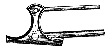 4) из накладки, которая лежит между курков и в шомпольных ружьях имеет спереди две четырехугольные дыры (гнезда) для помещения пяток, или хвостов, казенников, а в центральных ружьях имеет по бокам раковины для помещения в них пистонных шпилек с гнездами и спиральными пружинками;