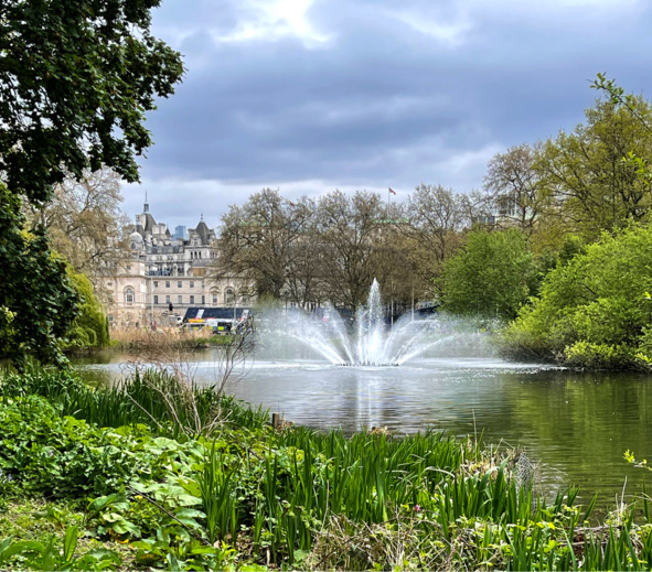 Мы выпили крепчайшего кофе и перешли в соседний парк Сент-Джеймс. Там было поинтереснее – в центре парка огромный пруд с фонтаном, гусями и утками. За прудом проступали очертания старинных зданий, в траве росли шампиньоны, на скамейках сидели английские старушки, наблюдая за проходящими туристами.