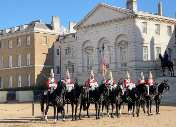 Вскоре парк кончился, и мы попали на открытое пространство, которое называлось Плац-парадом конной гвардии. Тут собралось человек двести, и мы поняли, что парад скоро начнется. Вскоре и правда показались добрые упитанные молодцы на черных конях. Одеты он были в красные кафтаны, на груди нечто металлическое, на головах каски с хвостами желтого цвета. Другие молодцы были в черных кафтанах и хвосты на касках были красными. Наверное, это что-то означало, но мы не стали разбираться и вышли на Мэлл стрит, чтобы посмотреть на знаменитую Даунинг стрит, которая была отгорожена от окружающего мира железной решеткой, за которой скучали четверо полицейских. Я сфотографировал решетку с полицейскими, и мы отправились дальше, чтобы посмотреть на Вестминстерский дворец и на башню Биг Бен. Сначала мы посмотрели на памятник Черчиллю – сгорбленный мужчина в шинели. Никакого пафоса, такое запоминается. Биг Бен, огороженный забором (ремонт), был на месте. Вблизи его толком не сфотографируешь – в кадр не влезает. Я решил оставить фотосъемку на потом, и мы отправились вдоль Темзы. Прошли мимо Нового Скотланд-Ярда, посидели на скамейке, любуясь проходящими туристами, посмотрели на здание Министерства обороны, которое украшено двумя голыми девушками (вот отсюда англичанка гадит, как полагал великий полководец Александр Васильевич Суворов), вышли на Трафальгарскую площадь, посмотрели на фонтан и памятник адмиралу Нельсону и оправились домой. Впечатлений для первого дня хватило. Мы вели себя, как заправские туристы, увидели места, которые полагается увидеть всем гостям Лондона. На большее сил у деревенских жителей не осталось. Теперь при упоминании Лондона можно говорить, что главное увидел, что там много туристов, что жизнь в деревне лучше и так далее.
