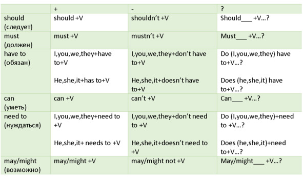 Pay attention: in negative sentences and questions before «need to» and «have to» we use do or does.