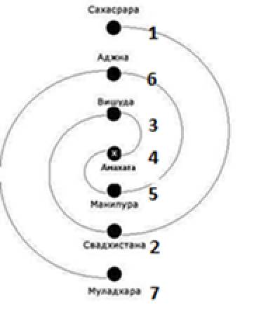 Если чакры сверху вниз – 1 2 3 4 5 6 7,