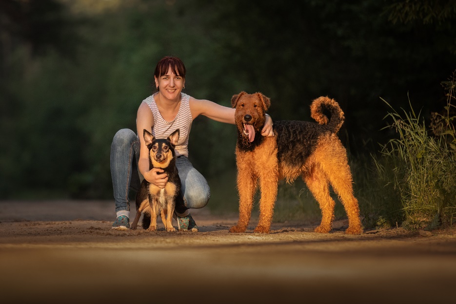 На момент публикации книги (2023 год) владелец эрдельтерьера Аякса и «нано-овчарки» Тори.
