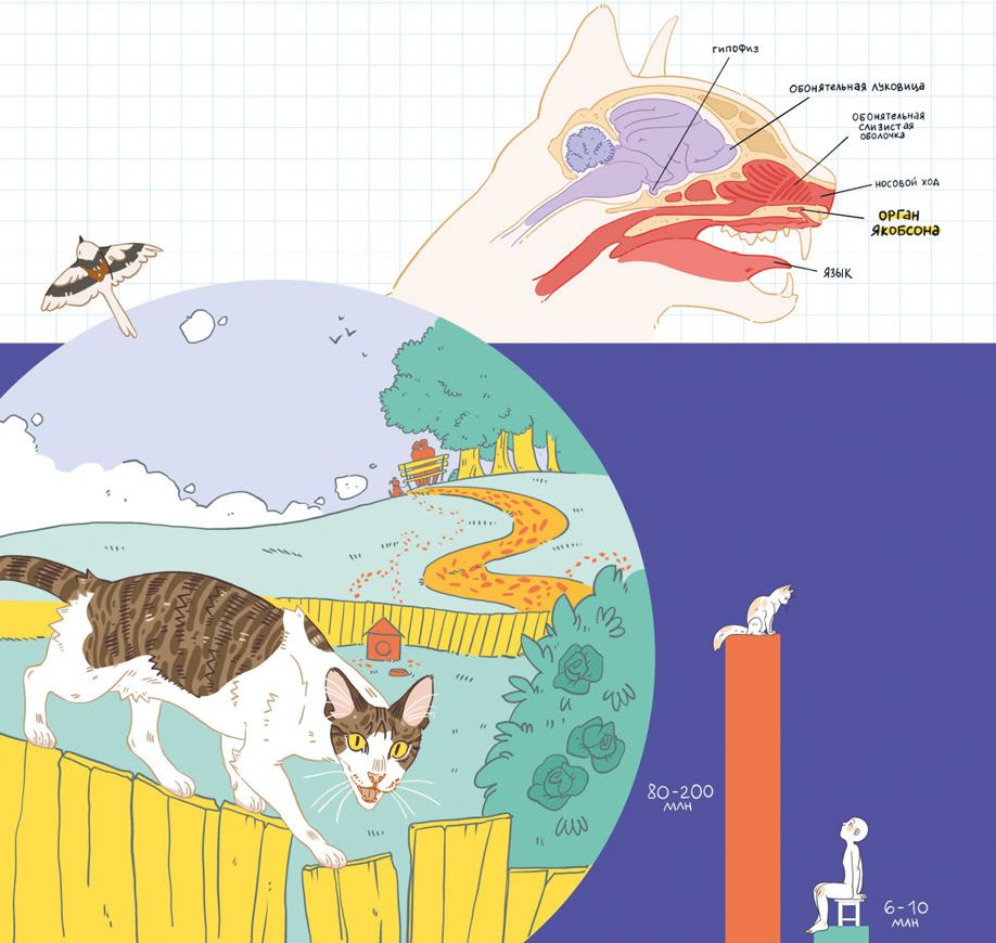 У человека от шести до десяти миллионов обонятельных клеток и около 400 типов рецепторов на них, а у кошек – от 80 до 200 миллионов таких клеток и примерно 520 типов рецепторов! Это значит, что они не только ярче чувствуют ароматы, но и различают запахи, которые мы, люди, воспринимать неспособны.
