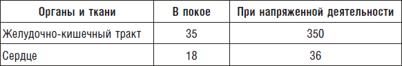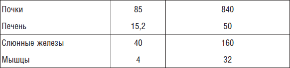 Потребление органами человека кислорода в мл на 1 кг веса в минуту