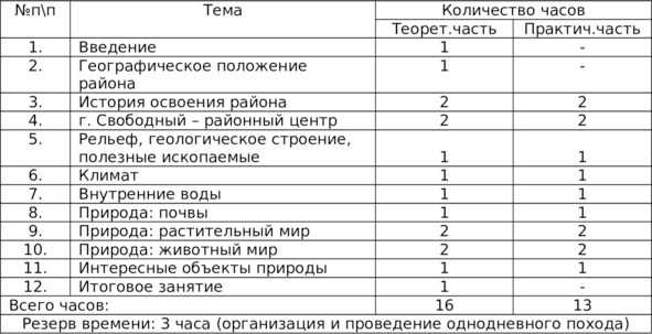 На вводный урок отводится 1 час. На нем решаются организационные вопросы, ставятся задачи изучения курса. Учитель делает краткую характеристику тем и знакомит с учебно-методическим комплектом курса: атласом Амурской области, картой Свободненского района, книгами для внеклассного чтения, материалами поисковой работы школьного музея.