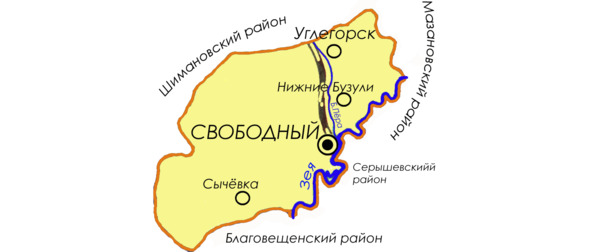 1. Покажите на карте Амурской области границы Свободненского района. Назовите районы, с которыми он граничит.