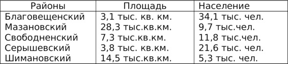 Проанализируйте данные таблицы и сопоставьте площади и население районов. Определите, какие районы превосходят Свободненский по площади и населению, какие – значительно меньше.