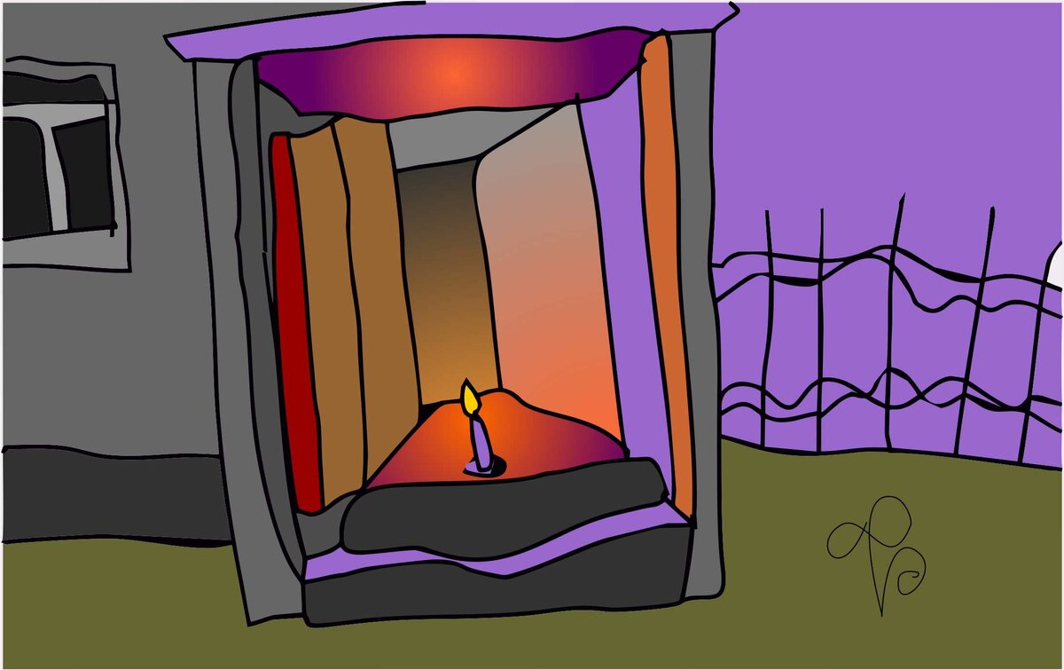 Тут она увидела дом с открытой дверью, на пороге горела свечка. Саша направилась туда.