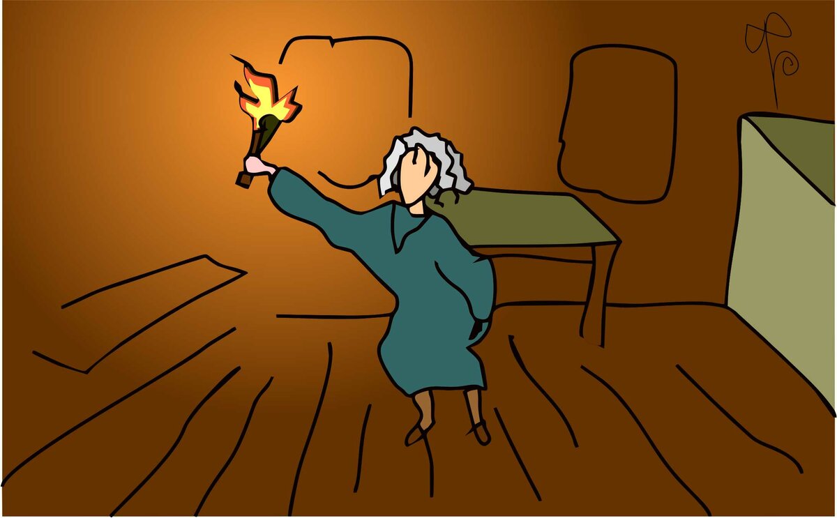 Старуха перестала ходить по комнате, подошла к столу, зажгла свечу и запалила от неё свой веник.