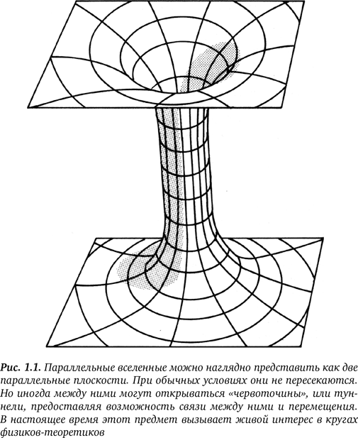 Некоторые из этих представлений не новы. В последние несколько столетий мистики и философы высказывали догадки о существовании других вселенных и туннелей между ними. С давних времен их занимало возможное существование иных миров, которые нельзя выявить с помощью зрения или слуха, тем не менее соседствующих с нашей Вселенной. Интриговало то, что, возможно, эти неизученные и неизведанные миры находятся совсем рядом, по сути дела, окружают нас, пронизывают нас повсюду, куда бы мы ни направлялись, но физически остаются для нас недосягаемыми, ускользают от наших органов чувств. Но все эти разговоры в конечном итоге оказывались пустыми и бесполезными, так как не существовало практического способа выразить эти идеи математически и, в конце концов, проверить их.