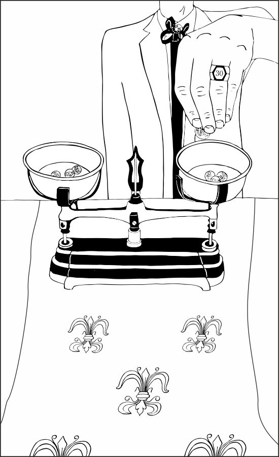Тонким местом в игре является сохранение тайны ставок. При неаккуратной реализации банкир волен раскрывать ставки приближенным игрокам, которые выигрывают за счёт остальных. Так в паре абзацев получаются игровые квазиденьги с коррупцией. К этой игре с весами мы ещё вернёмся в пятой главе.
