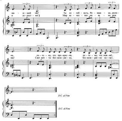 Фрагмент музыкальной темы из арии Ромашки