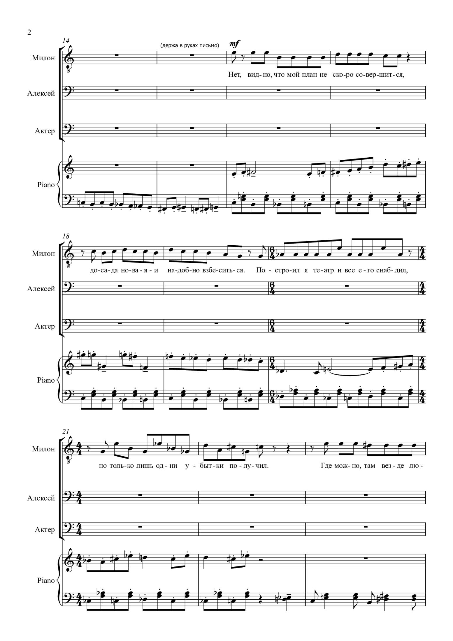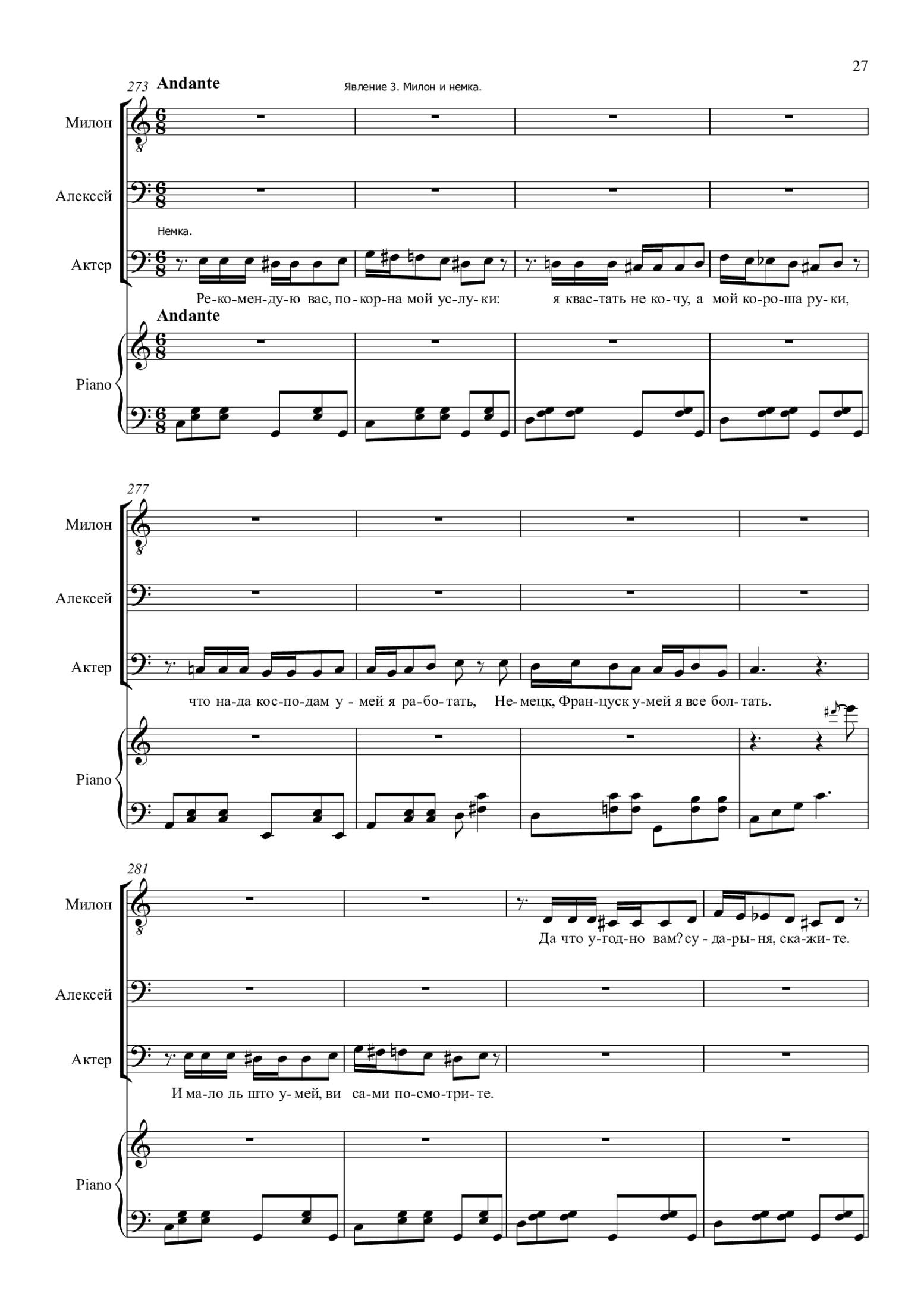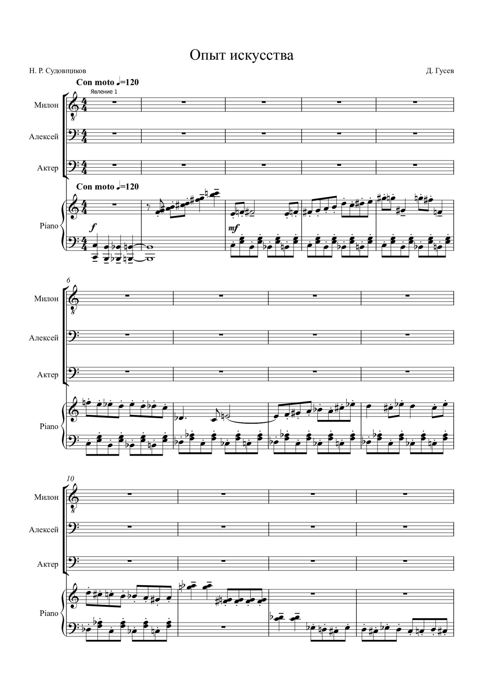Опыт искусства. Комедия в одном действии на текст Н.Р. Судовщикова для тенора и двух баритонов в сопровождении фортепиано