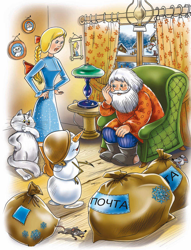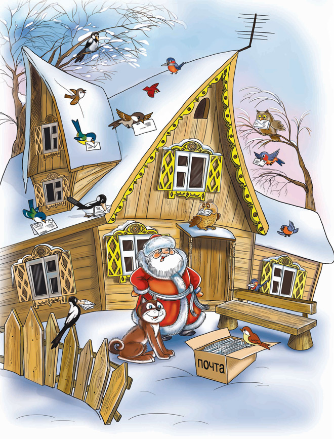 «На деревню. Дедушке Морозу».Письма эти забирали почтовые снегири, голуби, синицы и относили в Дедморозовку. Пока дед Мороз отвечал на письма, Снегурочка кормила птиц, которым предстоял еще нелегкий обратный путь…