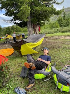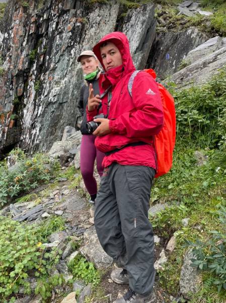 Вася- прирожденный коммерсант! Договориться, купить, продать – прям его стихия! Чем занимается Вася: продает недвижимость в Питере, возит ткани из Китая, а здесь шьет из них постельное белье (не сам конечно)), а Надя продает через инстаграмм, продает кровоостанавливающе губки. Я чуть было не приобрела у него коробку губок из 512 штук, так здорово он про них рассказывал И еще у него потрясающее чувство юмора, причем с серьезной миной, меня просто иногда сгибало пополам от его шуток )) Ребята живут в Санкт-Петербурге, вообще они модные такие. Но одежда не слишком подходит для похода, хотя они и не жаловались, но на будущее приглядывали, что прикупить на следующий поход.