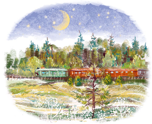 Любопытная Ворона не спала и сумела проследить за похитителем. До вокзала она долетела, а потом с удобством проехалась на крыше вагона.